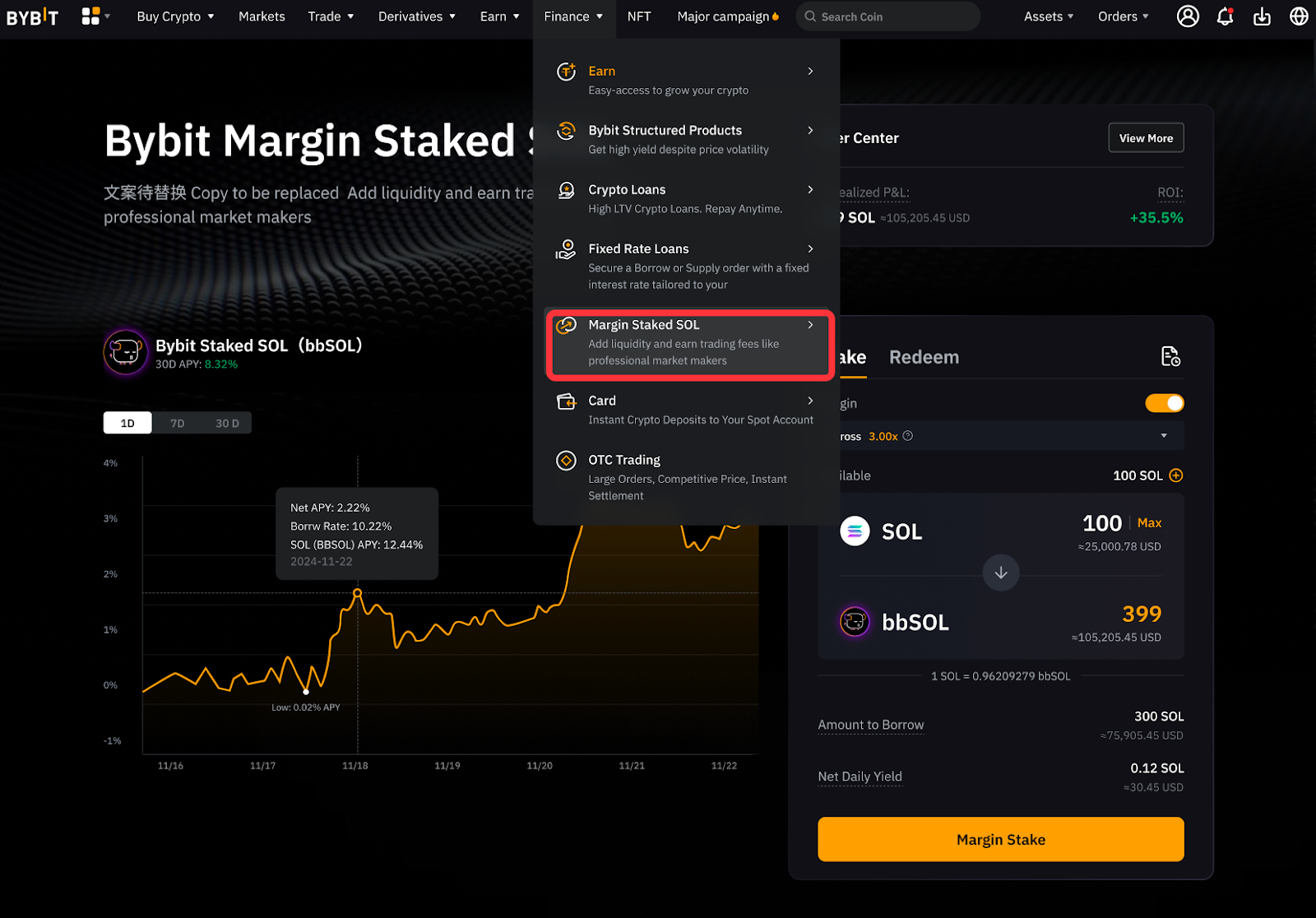 Крок 1. Натисніть ФінансиМаржинальний стейкінг SOL на панелі навігації, щоб перейти на необхідну сторінку.