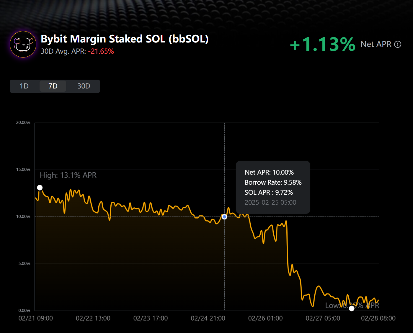 Крок 3. Наведіть курсор на графік APR, щоб переглянути чисту APR, ставку позики та APR SOL на будь-який конкретний момент часу.