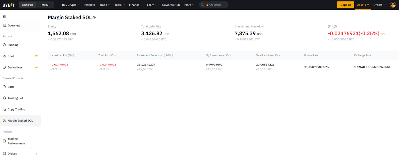 Крім того, на сторінці Активи Маржинального стейкінгу SOL ви отримаєте огляд свого P&L, зобов’язань тощо.