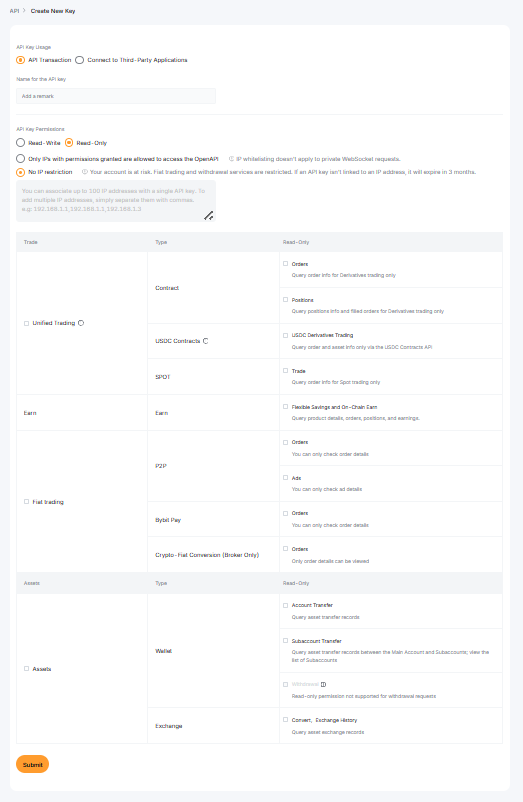 Примітка: Хоча для створення ключів API та керування ними можна використовувати застосунок Bybit, для спрощення налаштування рекомендується використовувати вебсайт Bybit.