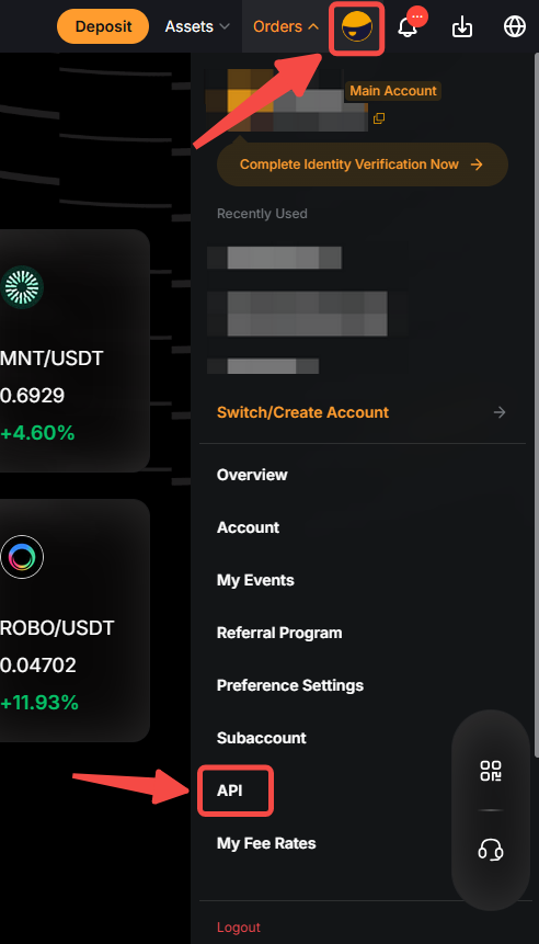 Крок 1: Увійдіть у свій акаунт Bybit і перейдіть на сторінку Керування API, натиснувши на значок акаунта → API.