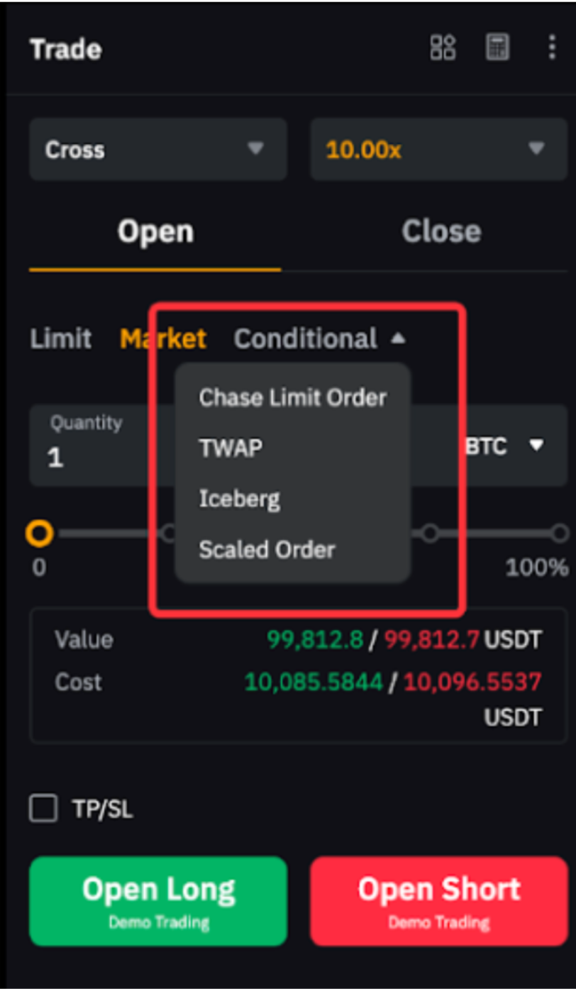 Щоб дізнатися більше про різницю між лімітними та умовними ордерами, перегляньте Типи ордерів, доступних на Bybit.