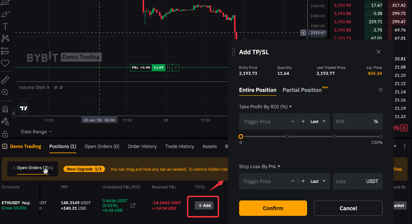 За допомогою ордерів TP/SL можна встановити цільову ціну для запуску ордера на закриття, щоб зафіксувати прибуток або обмежити збитки. Для отримання додаткової інформації перегляньте статтю Загальна інформація про тейк-профіт і стоп-лос (безстрокові та ф'ючерсні контракти).