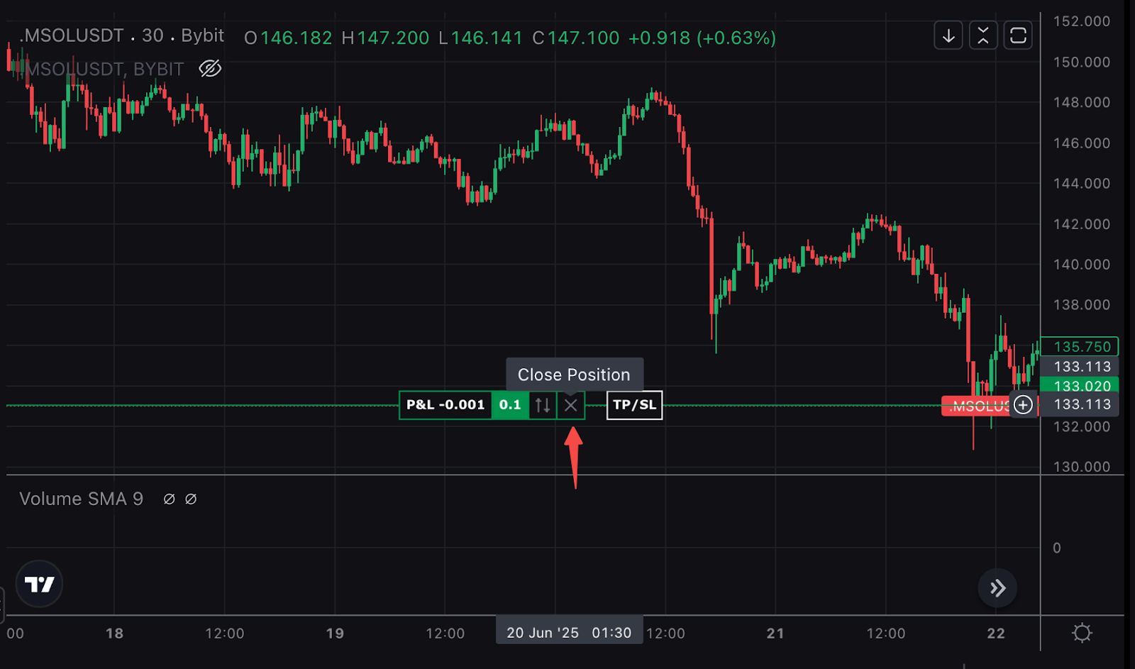 Клацніть кнопку Швидке закриття на графіку, щоб одним кліком вийти з усієї позиції за ринковою ціною.