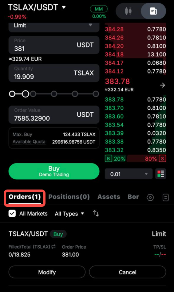 Торгівля xStocks на Bybit пропонує вам різні типи ордерів. Щоб дізнатися більше про відмінності між кожним типом ордера, зверніться до статті Типи ордерів, доступні на Bybit.