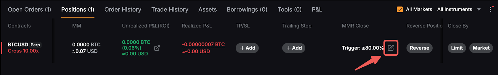2. Створення ордеру закриття для MMR для часткової кількості позиції не підтримується, і для кожної позиції можна встановити лише один ордер закриття для MMR.