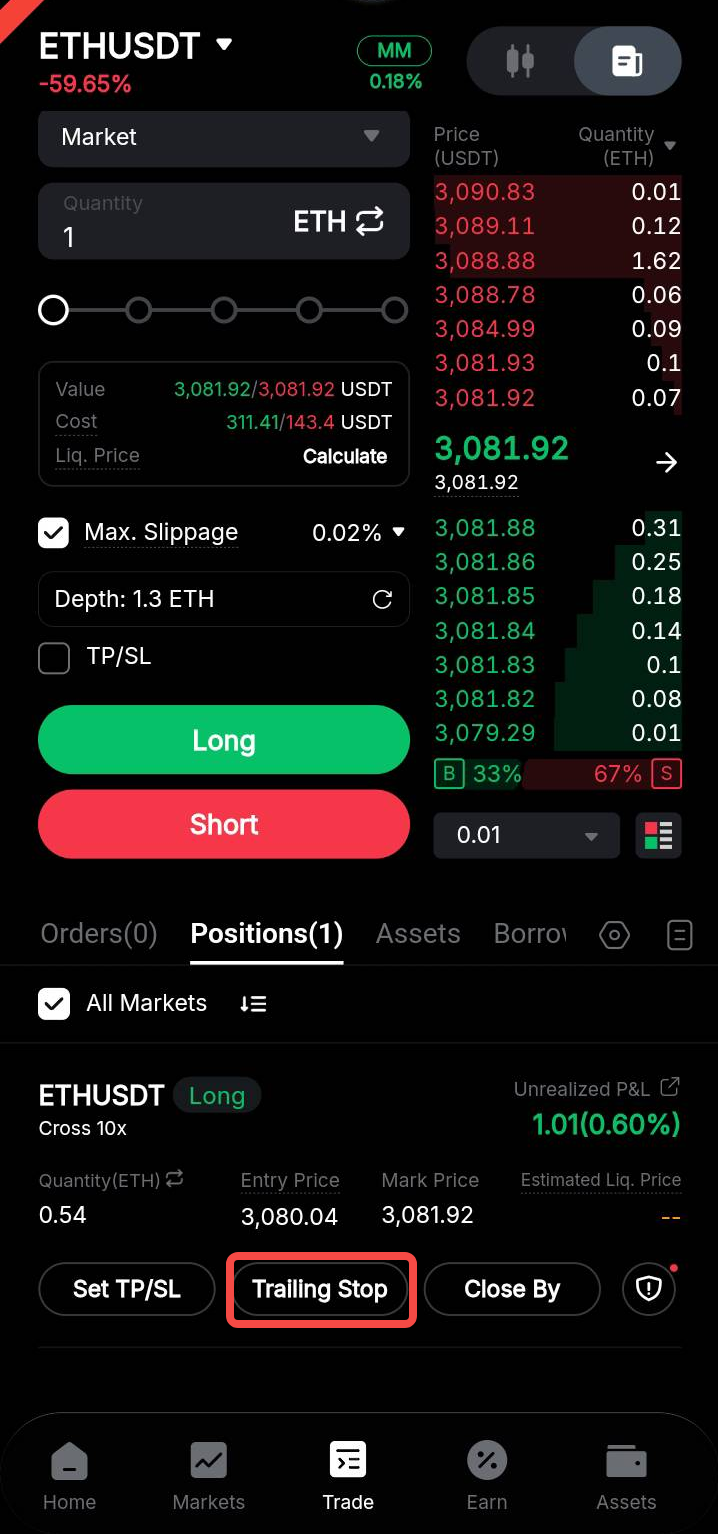 Як розмістити трейлінг стоп-ордер на безстроковій та ф'ючерсній торгівлі