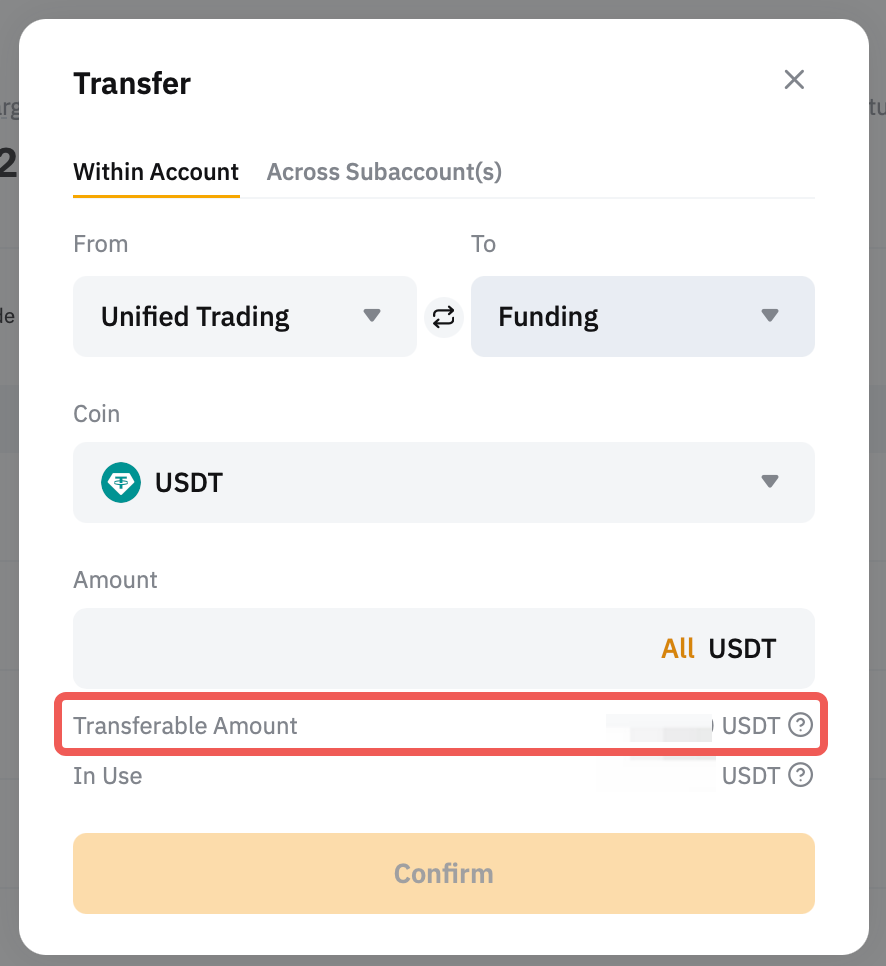 Це дозволить вам перевести вибрану монету у вашому основному акаунті або субакаунтах. Докладніше дивіться в розділі Як переказати активи на Bybit.
