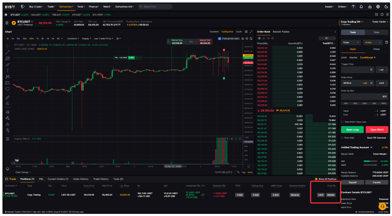 Để đóng một vị thế, hãy chuyển đến tab Vị Thế và bạn có thể đóng theo lệnh Giới Hạn hoặc Thị Trường. Nếu bạn muốn đóng bằng các chiến lược khác như lệnh điều kiện, bạn có thể sử dụng chức năng TP/SL tích hợp của chúng tôi (đối với chế độ Phòng Hộ) hoặc đặt từ vùng đặt lệnh ở chế độ Một Chiều.
