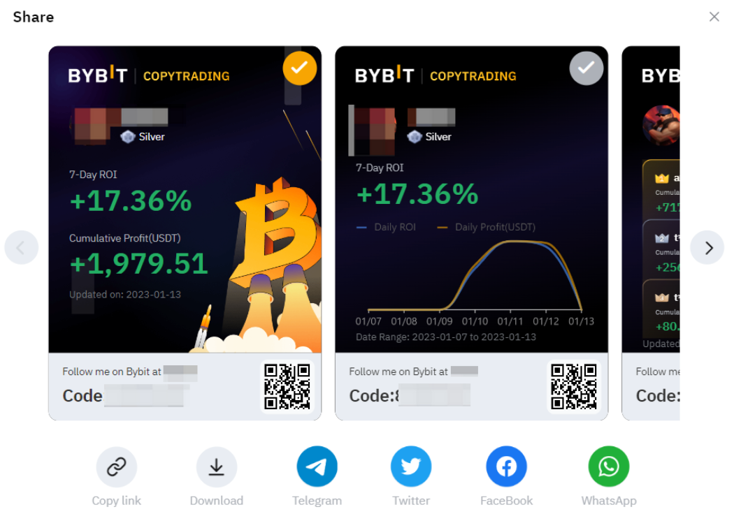Bạn cũng có thể hiển thị các vị thế hoạt động tốt nhất của mình bằng cách chia sẻ P&L lệnh riêng lẻ trên mạng xã hội.