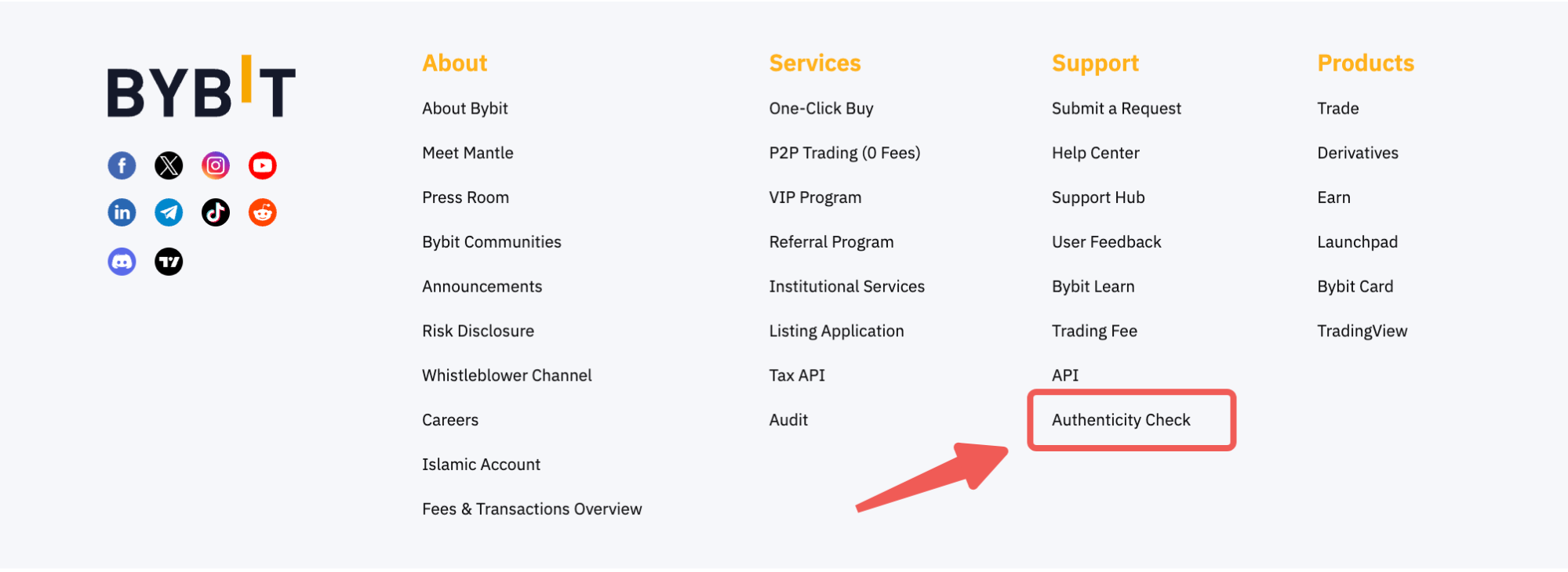 Xin lưu ý rằng địa chỉ của người gửi trong email và tin nhắn văn bản có thể dễ dàng bị giả mạo. Do đó, ngay cả khi Trình Kiểm Tra Xác Thực hiển thị kết quả xác minh là chính thức, điều đó không nhất thiết có nghĩa là email hoặc tin nhắn văn bản bạn nhận được thực sự được gửi từ hộp thư chính thức của Bybit. Xin hãy thận trọng và sáng suốt!