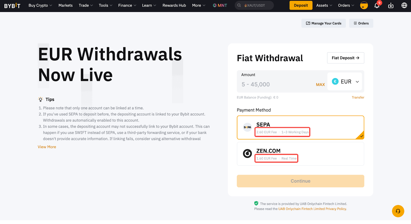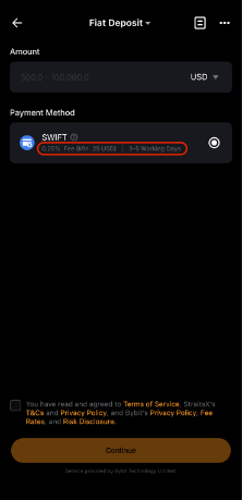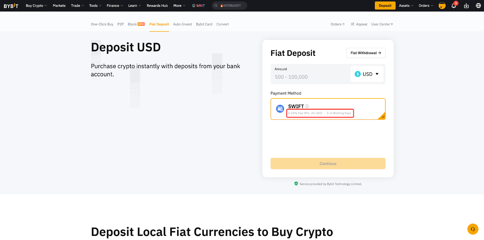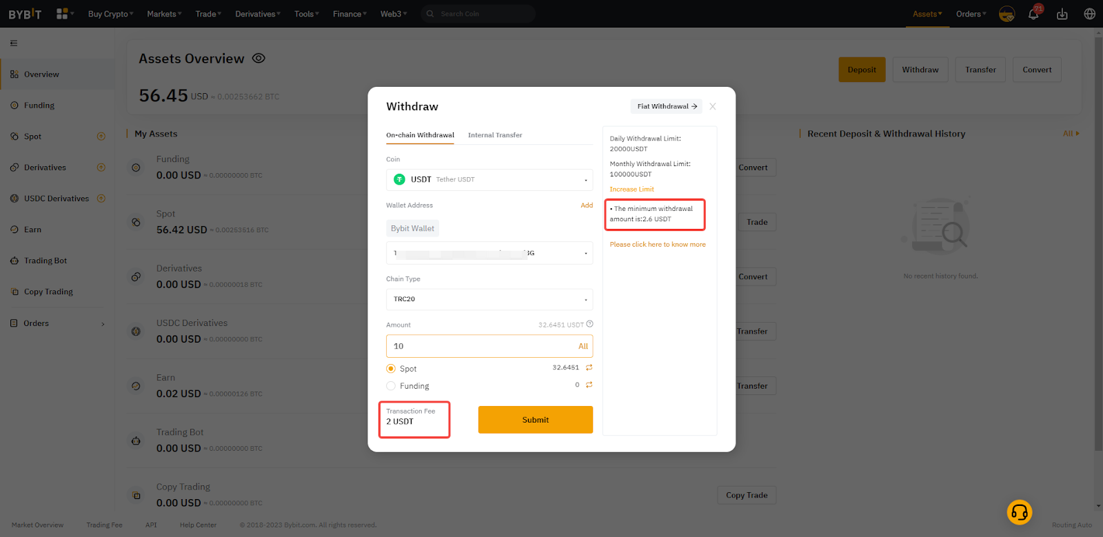 Miễn phí trên Bybit đối với các giao dịch chuyển khoản nội bộ hoặc nạp crypto on-chain vào Tài Khoản Bybit của bạn.