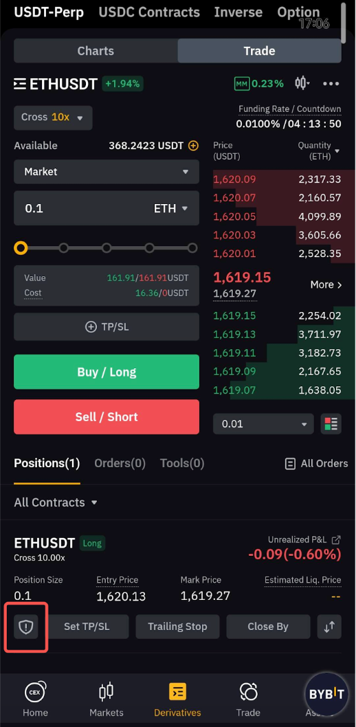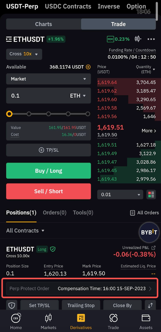 - 目前,永續保護僅支持在 Bybit App 上使用。