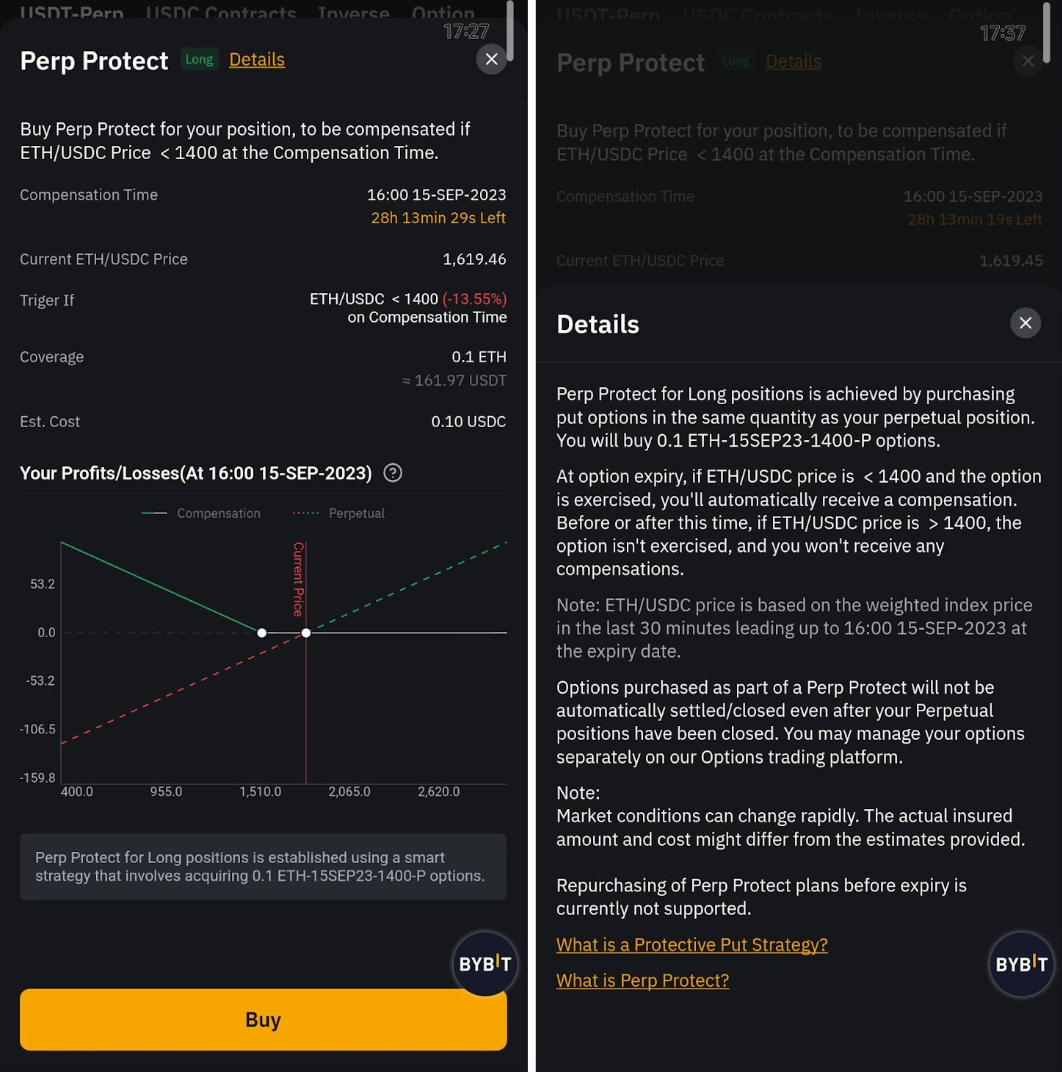 - 永續保護並非無風險的產品,用戶永續倉位的強制平倉流程仍遵循標準流程。購買前,請確保您已完全瞭解該產品。欲瞭解更多詳情,請參閱永續保護簡介。